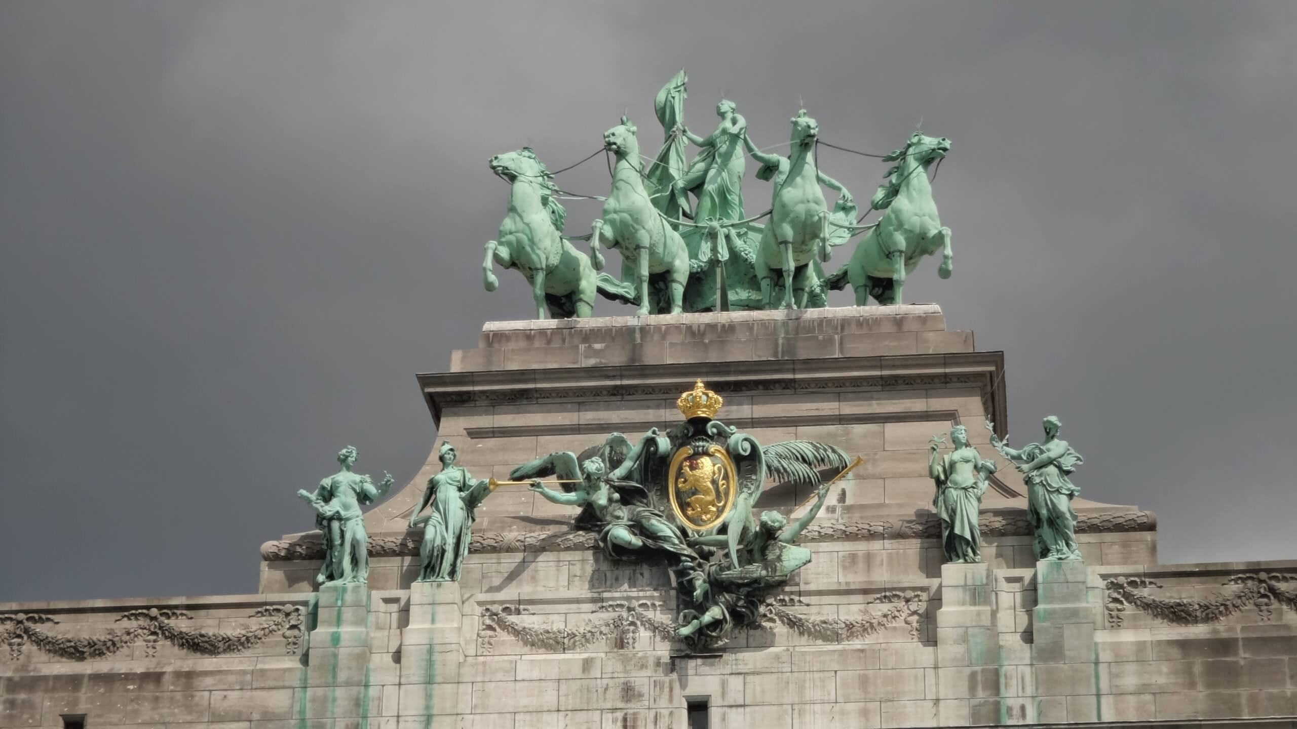 No parque está localizado o imponente Arco do Triunfo – Les Arcades du Cinquantenaire, foi construído em 1905, dominado por uma carruagem de bronze que recorda o Portão de Brandeburgo em Berlim, substituindo uma versão temporária anterior da arcada por Gédéon Bordiau. As estruturas foram construídas em ferro, vidro e pedra, simbolizando o desempenho econômico e industrial da Bélgica. É um dos arcos monumentais mais belos da Europa. Quando estivemos por lá, estava ocorrendo um evento com uma experiência bem inusitada para proporcionar jantares suspensos por um guindaste a cerca de 50 metros de altura – Dinner in the Sky.